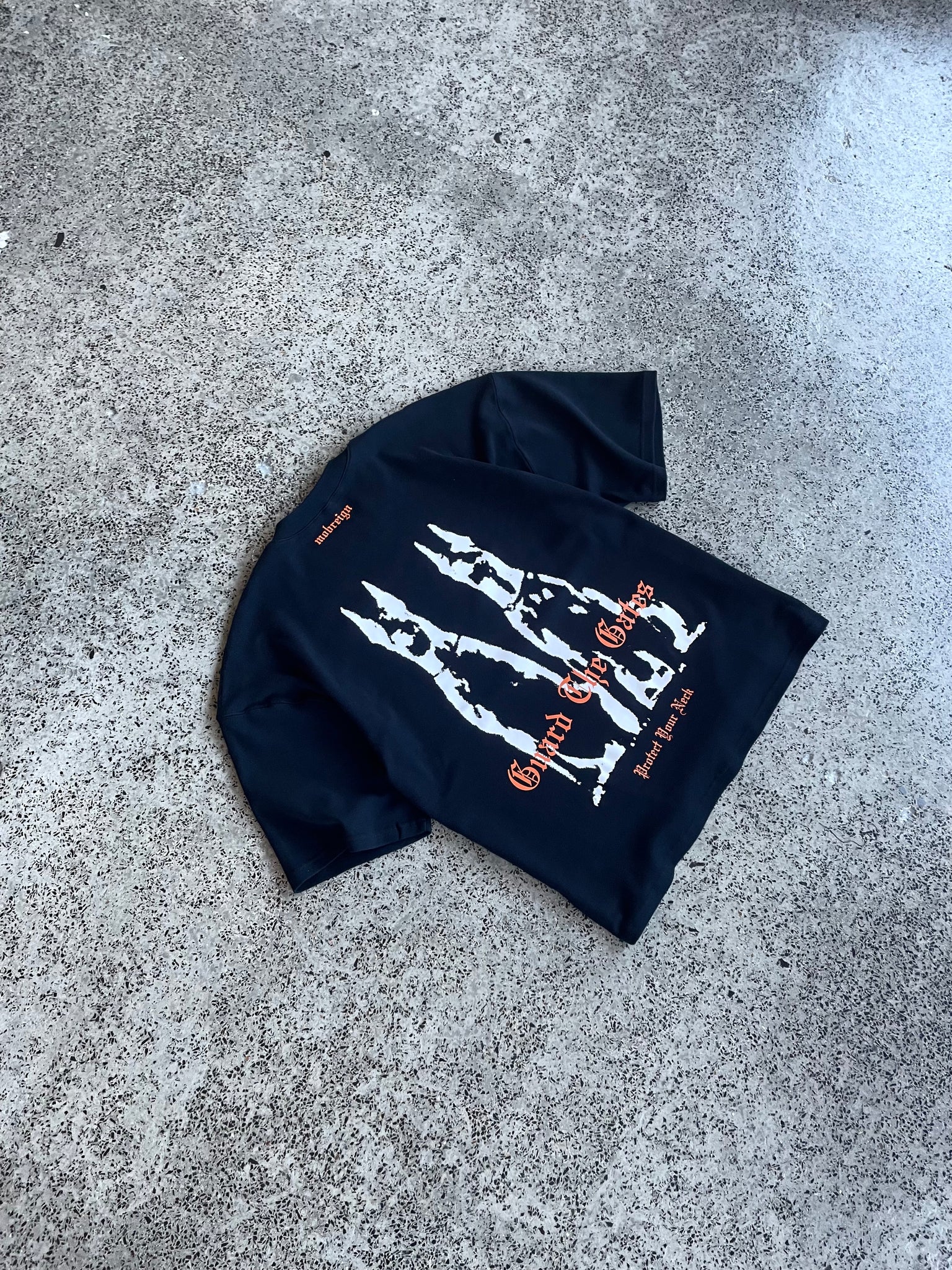 Newly designed luxury-weight 200 GSM cotton T-shirt in our upgraded cropped silhouette. Features our 'Protect Your Neck' screen print on the back w/ a minimal ARCHETYPE print on the front left breast pocket.